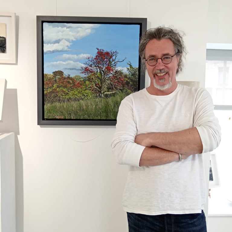 Peter McSweeney is a contemporary Irish landscape artist from Douglas, Cork. He graduated from Ballyfermot College Dublin in 1999 with a Diploma in Classical Animation. He transitioned from animation to become a landscape painter in oils, steadily honing his craft across years through a quiet and secluded practice, emphasising intensive and patient study to grasp the tactile essence of the natural world in his works. McSweeney has a profound sympathy with unspoilt wild Irish landscapes, excused of artificial structures and traces. Multiple viewers of McSweeney's work have been moved to remark on the tactile nature of the paintings, a common theme being close to feeling when one might reach out and touch the grass, stone or earth. He is reticent to articulate aloud a specific aim for his work, deferring to the subjectivity of the viewer. Peter now divides his time as a painting tutor and painting in his studio in Cootehall, Co Roscommon.
